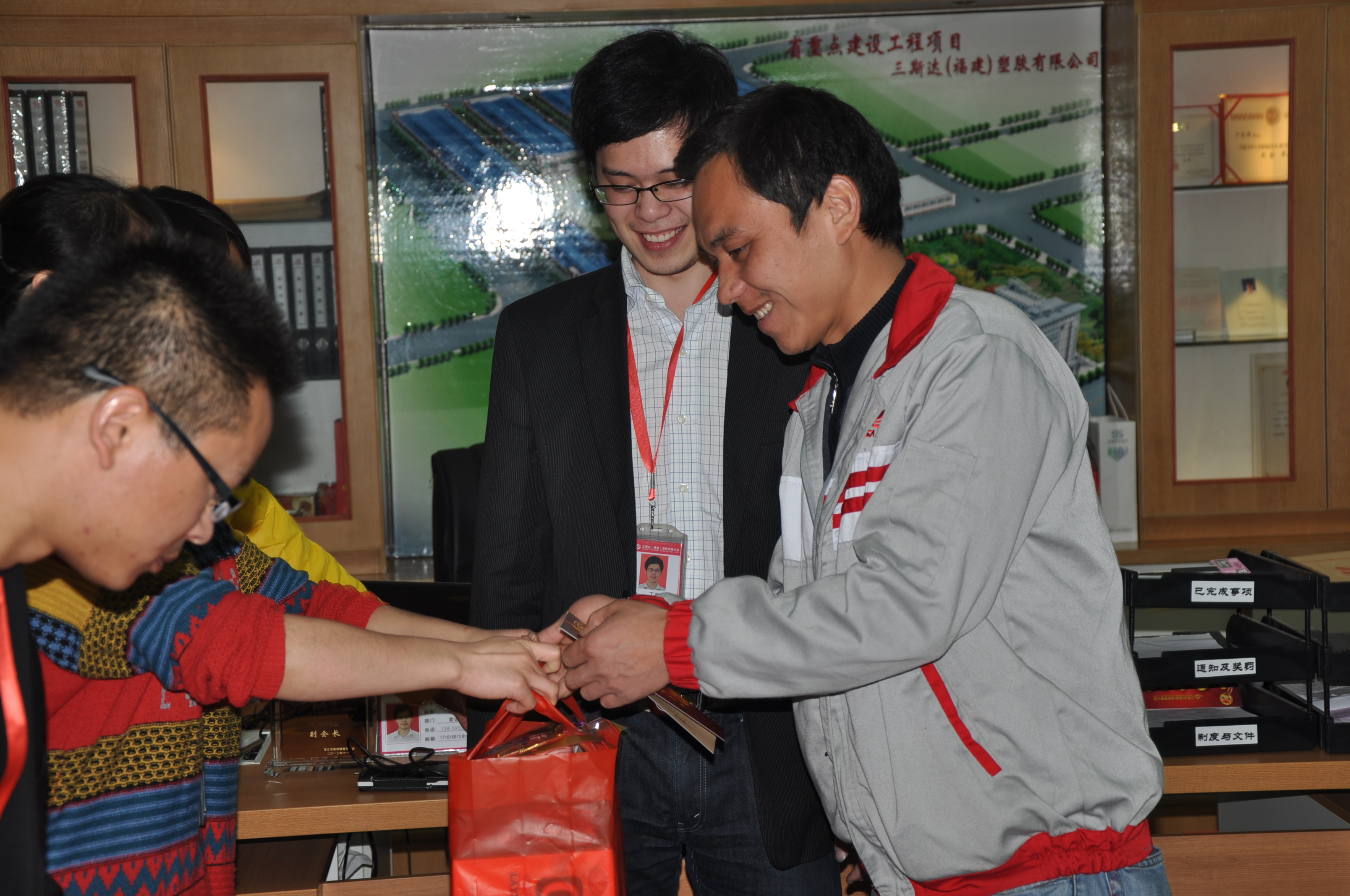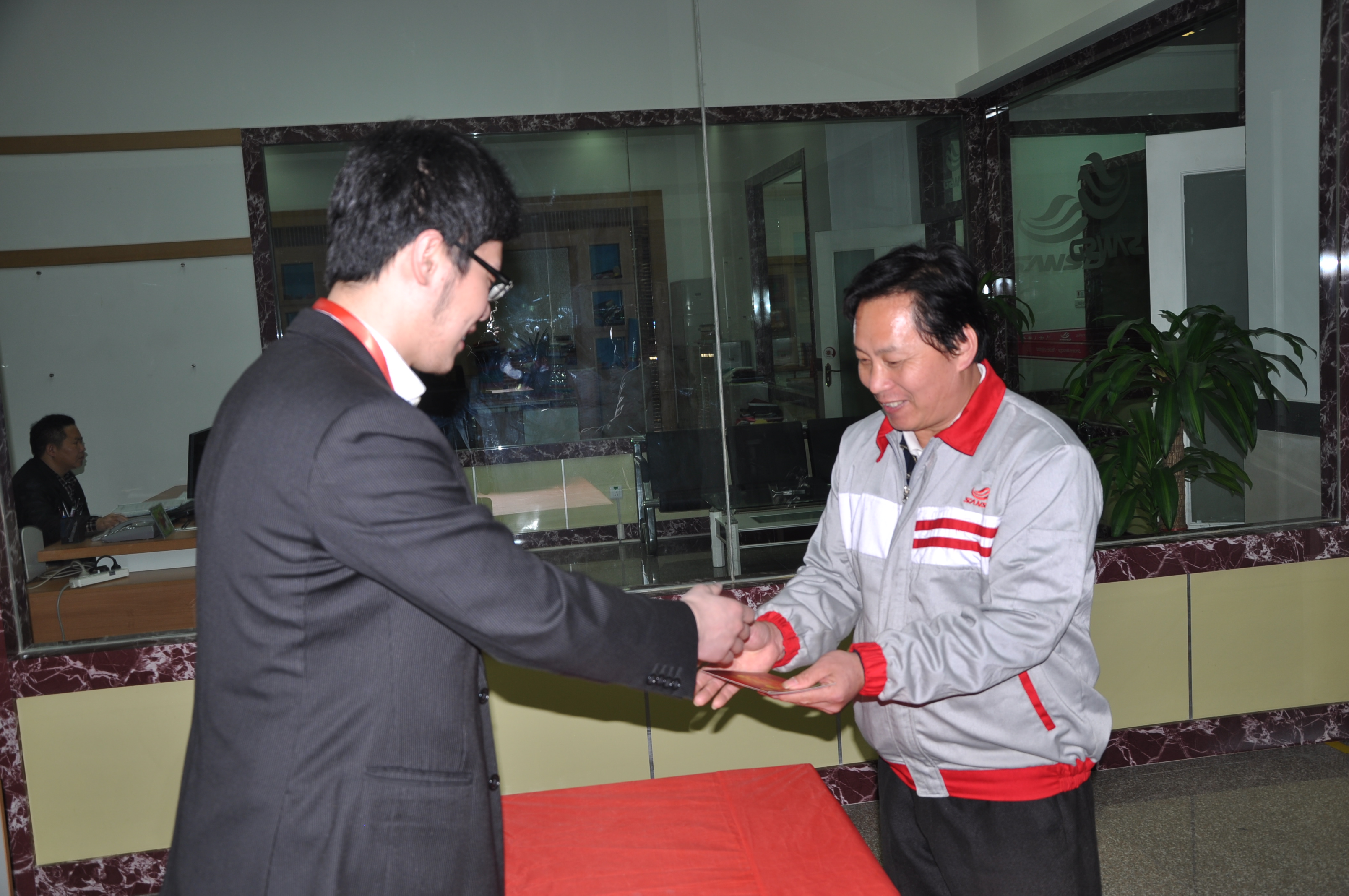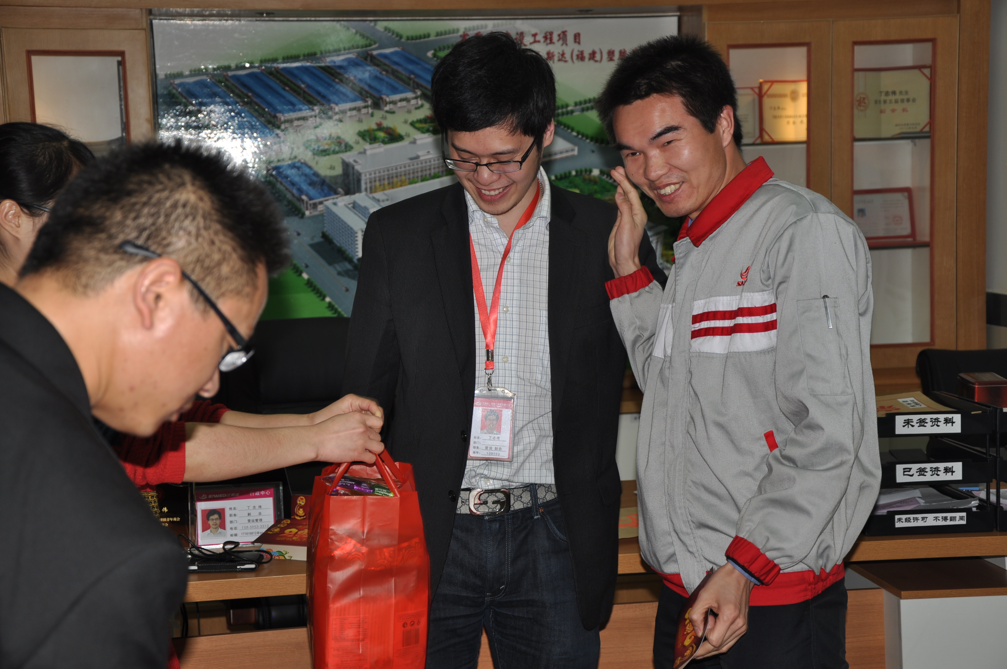 時(shí)光如梭,歲月流金!除夕佳節(jié)已悄然而至,為了感謝所有職工在2012年的辛勤工作和全力付出,2013年1月26日,公司營運(yùn)副總丁志偉親自采購節(jié)日禮品,并親手為職工奉上,如此做法讓職工深感鼓勵(lì)和欣慰。同時(shí)丁志偉副總還將親自草擬的賀卡內(nèi)容制作成賀卡送給職工同仁們,上面書寫的是走過2012的艱辛和坎坷,收獲與喜悅,并送上深深的節(jié)日祝福,并衷心的祝愿大家在新的一年一定會(huì)創(chuàng)造出更加輝煌的業(yè)績和更加美好的未來!。